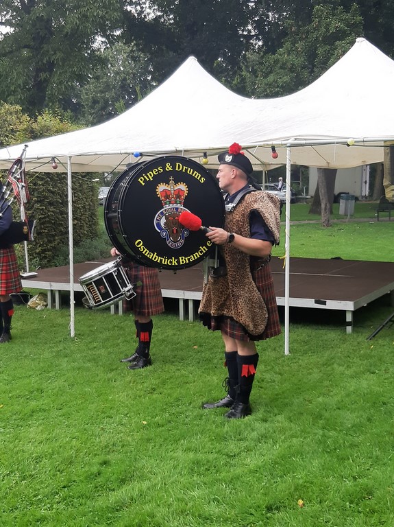 Die Sommer-Kulturnacht-Nacht des Kunstkreises am 19.08.2023 startete mit dem Einlass um 18.00 Uhr. Trotz feinen Nieselregens trauten sich die ersten Gäste pünktlich in den Apfelgarten am Haus Hehwerth. Als dann die Stelzengeherin Aurora in ihrem Blumen.-/ Elfenkostüm um 18.30 Uhr die Festwiese betrat, trat ihre Vorhersage ein. Sie sagte kurz vor dem Auftritt, das es gegen 18.45 Uhr würde es aufhören zu regnen. Bereits eine Viertelstunde früher konnten sich die Ersten der 250 bis späteren 300 Besucher auf die trockenen Sitzmöglichkeiten vor der Bühne Platz nehmen. Kurz vor 19.00 Uhr hörte man schon von der Bahnhofstraße kommend, die Dudelsackspieler von den Pipes & Drums oft he Royal British Legion Osnabrück. Sie machten einen Umzug über den Marktplatz und spielten dann vor der Bühne für die Zuschauer sehr bekannt Lieder auf ihren Instrumenten. Während dessen per formte hier die Stelzengeherin Aurora als Elfe Fabula Fleur ihre Kunst mit Balanceakten vor. Die Begrüßung durch Christiane Budke war gleichzeitig auch mit einem Dank an Doris und Christian Knüppe / Rösmann verbunden. Sie stellten früher mit dem Rosengarten den bisherigen Austragungsort, was aber aus privaten Gründen nicht mehr möglich war. Daher der Umzug in den Apfelgarten. Im Anschluss unterhielt die Band „ ZWEIVORMBUS „ das Publikum mit bekannten Evergreens und Schlagern. Nach dem zweiten Auftritt der Pipes & Drums folgte ein bekannter Gastkünstler aus Kattenvenne. Heinrich Schulte Brömmelkamp, bekannt aus vielen Auftritten im Münsterland, brachte das Publikum mit seinen Anekdoten mächtig zum Lachen. Er verschonte auch nicht die 3 Bürgermeisterkandidaten, Felix Wurm, Daniel Lübke und Philip Middelberg mit gekonnten Fragen und schlagfertigen Kommentaren. Im Anschluss folgte dann ein Musical- Ensemble aus Münster. Die Gruppe „ WhatASound“ zündete ein Feuerwerk von A cappella und vielen verschiedenen Musikbeiträgen zur Erheiterung des Publikums bei. Während der gesamten Vorträge war der Getränkewage unter Leitung von Michael Leben, der Grillstand von Armin Sünnewie und die Cocktail-Bar unter Leitung von Renate Bodi ständig gut besucht! Zwischenzeitlich unterhielt das Duo „ ZWEIVORMBUS „ das Publikum mit geselliger Musik verschiedener Richtungen. Gegen 21.15 Uhr zündet dann die Stelzen-Performerin im südlichen Bereich des Apfelgartens eine fantastische Feuershow. Gekonnt wurden Feuerbälle, die an Seilen befestigt waren, über den Kopf, seitlich über die Handflächen abdrehend oder auch in die Luft geworfen wurden. Mit einem Feuerring, der wie ein Hula-Hup Reifen um die Hüften / Körper geschwungen wurde, verzauberte die Künstlerin sämtliche Zuschauer. Zum Schluss wurde sie dann noch als Feuerspuckerin tätig. Da wurde es auch dem letzten Zuschauer recht warm, da die Stichflamme wohl 2.50 Meter hoch gespuckt wurde. Nicht nur die, sondern die ganze Show, erwärmte die Zuschauer mächtig. Zum Abschluss bedanke sich Christiane Budke bei allen Künstlern für ihre Darbietungen, allen Helfern, der Presse und auch bei den Anwohnern für die Geduld, und für die tatkräftigen Hände beim Auf.- und Abbau. Vielleicht sieht man sich in 2 Jahren wieder, da ein solches Event finanziell und kräftemäßig vom Kunstkreis durchgeführt werden kann!